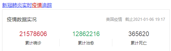 截止2021年1月6日,美國累計確診病例高達2178萬人,累計死亡人數(shù)超過36萬。
